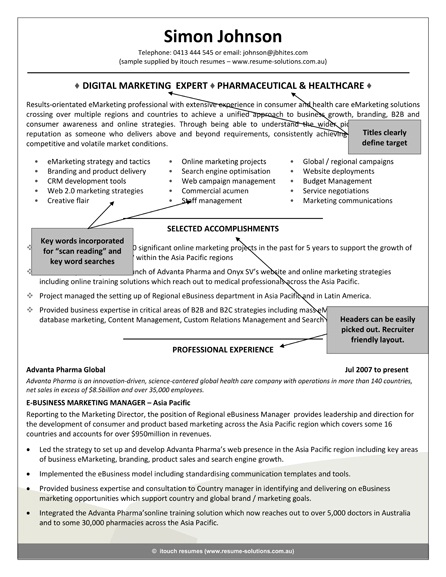 Position titles & headers – recruiters love to see “like for like”. If you have held or currently hold a similar position to that being advertised, this needs to stand out clearly in the resume and the headers. TIP: Where your own job titles differs in name but are equal in job responsibility of the advertised role, consider adjusting your position title or offering a comparative in brackets; for example "CLIENT PROGRAM DELIVERY" can be written as "CLIENT PROGRAM DELIVERY (ACCOUNT MANAGER)".